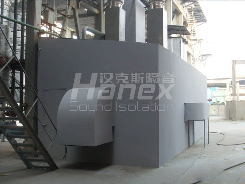 嘉興富林化纖有限公司75T/H循環(huán)流化床鍋爐配備一臺一次風(fēng)機,進(jìn)出風(fēng)口噪聲分別高達(dá)94.4dB(A)、100.1dB(A)。漢克斯隔音采用了在進(jìn)出風(fēng)口安裝消聲器并對其整體設(shè)置隔聲罩的方式進(jìn)行了治理,治理后在隔聲罩1米處量的噪聲值為80dB(A)(未排除其他設(shè)備噪聲)