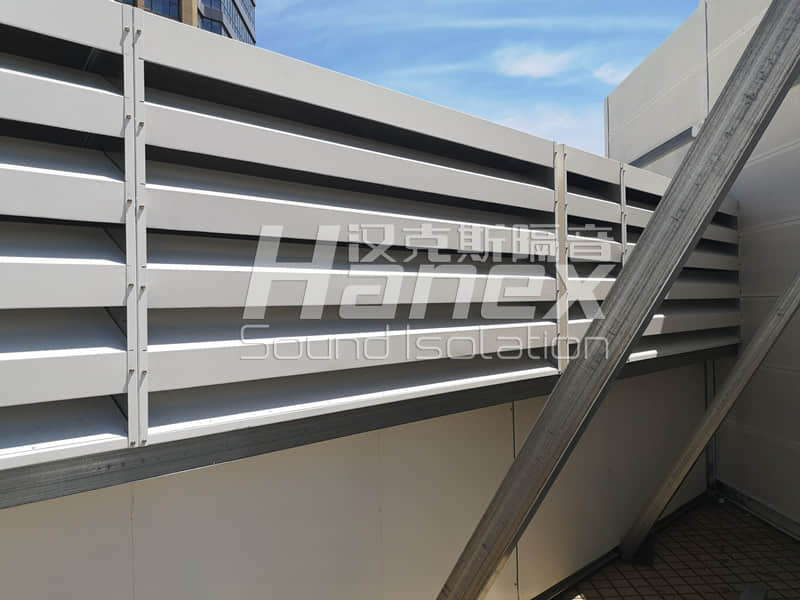 2)安裝進風(fēng)消聲百葉:為保證3組空調(diào)機組進風(fēng)量需求及罩內(nèi)設(shè)備通風(fēng)散熱,整體隔聲罩四周設(shè)計安裝進風(fēng)消聲百葉;