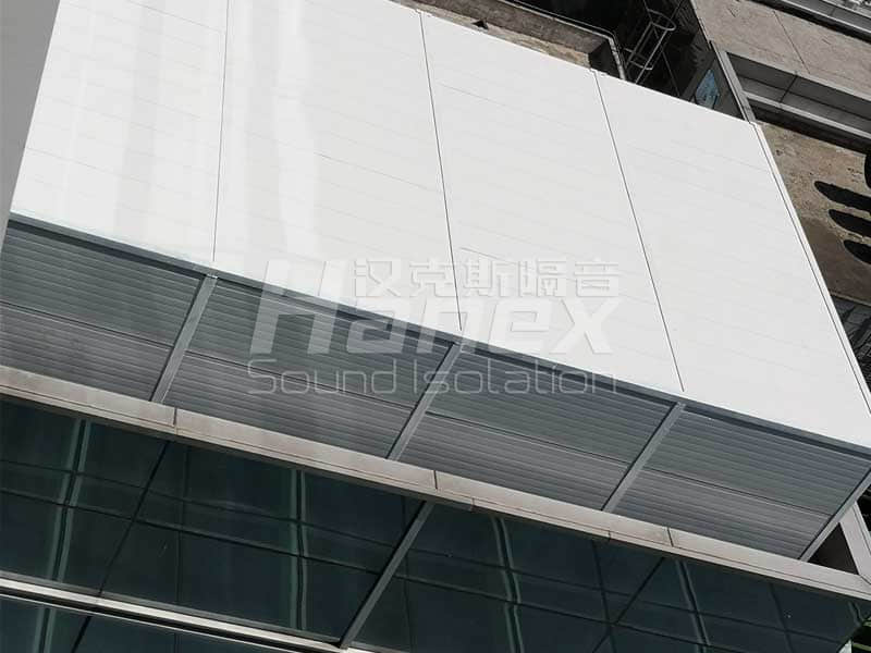1、經(jīng)過漢克斯隔音技術(shù)人員現(xiàn)場踏勘及結(jié)合業(yè)主所提供的資料,裙房屋面上T4冷卻塔設(shè)計安裝隔聲棚。